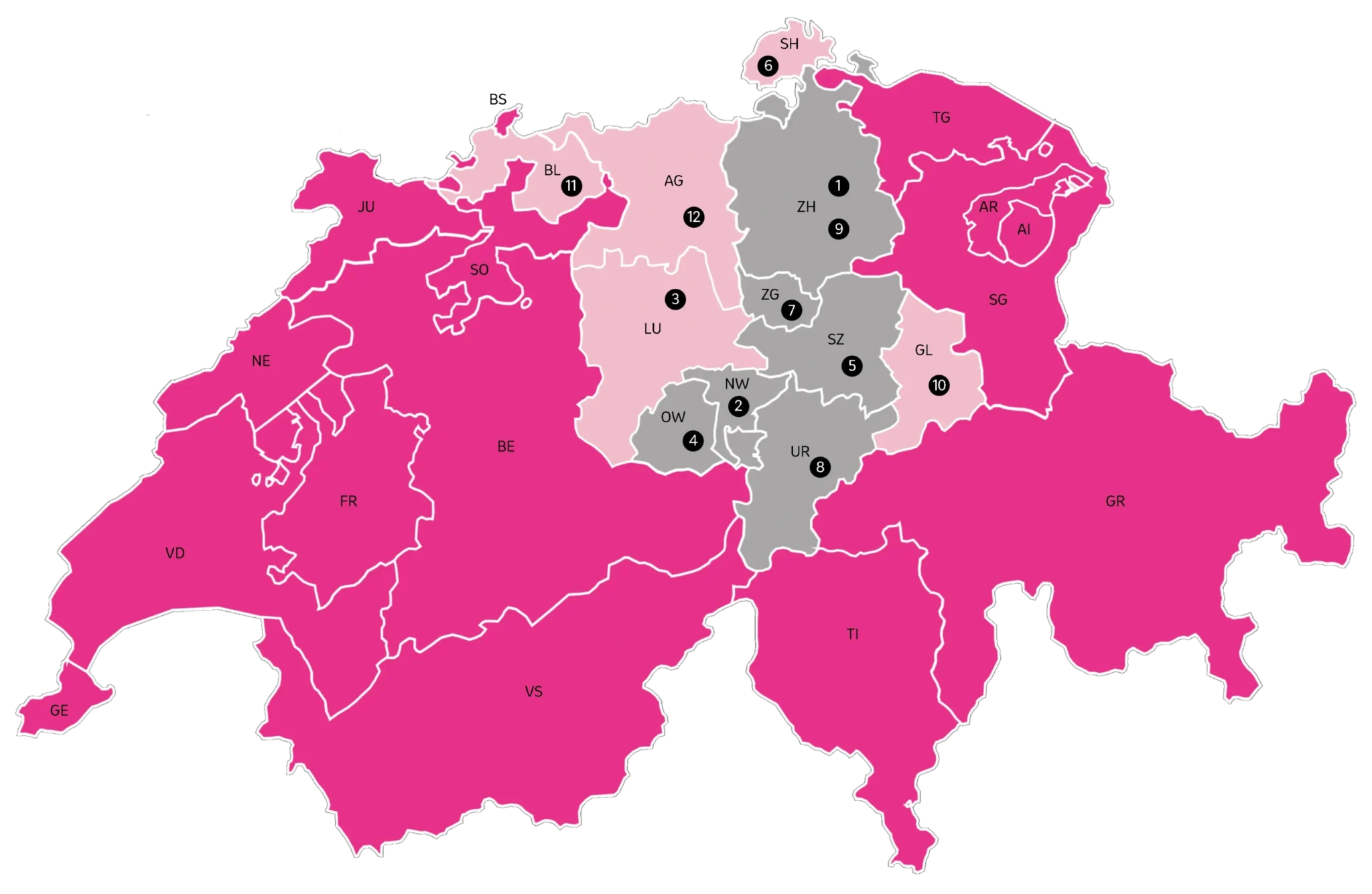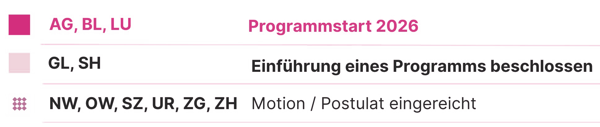 - Einführung geplant: AG, BL, GL, LU, SH.