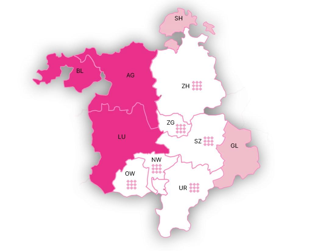 - Kein Mammografie-Screening Programm: NW, OW, SZ, UR, ZG, ZH.